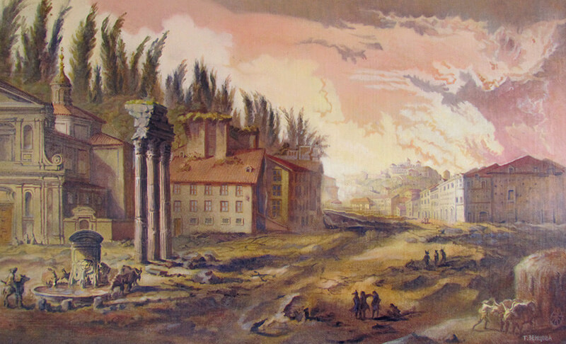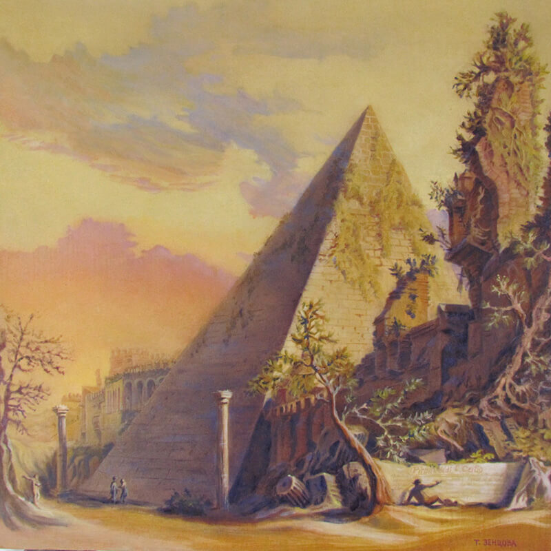 Se dice que parte de la obra de este arquitecto, dibujante y grabador esta basada en hechos reales, y consta que es asi. Vemos los reguistros de Coliseo y de Panteon.. pero parte de su obra se considera invento de su imaginacion. Que hace un piramide egipcia en Roma?